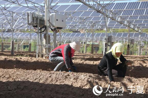 暖阳煦煦,微风习习。5月11日,记者跟随“决战‘西海固’脱贫攻坚看宁夏”采访团来到固原市原州区河川乡明川村。在“农光互补”项目电站装机点一排排高大的光伏发电板在太阳的照耀下闪闪发光。在光伏发电板下面,286亩示范区域一株株芍药破土而出、生机盎然。